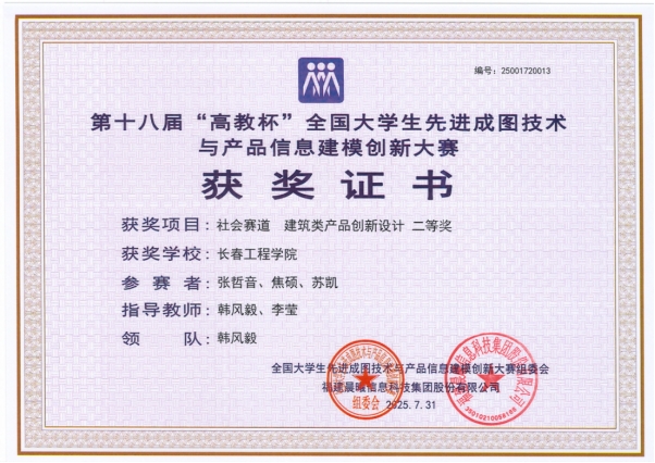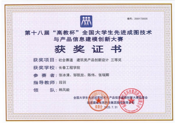 第十八届“高教杯”全国大学生先进成图技术与产品信息建模创新大赛圆满落幕。经过激烈角逐,我院学子凭借扎实的专业技能与创新实力,从全国众多参赛队伍中脱颖而出,荣获社会赛道建筑类产品创新设计赛道二等奖1项、三等奖1项,实现了我院在该赛事上的突破!